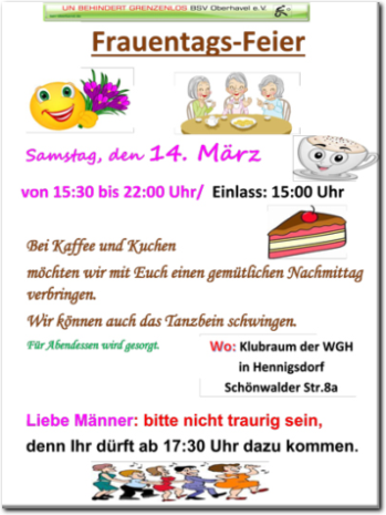 *** 14.03.2026, 15:00 Uhr -- Frauentagsfeier --- mehr Infos unter 'Termine' ***